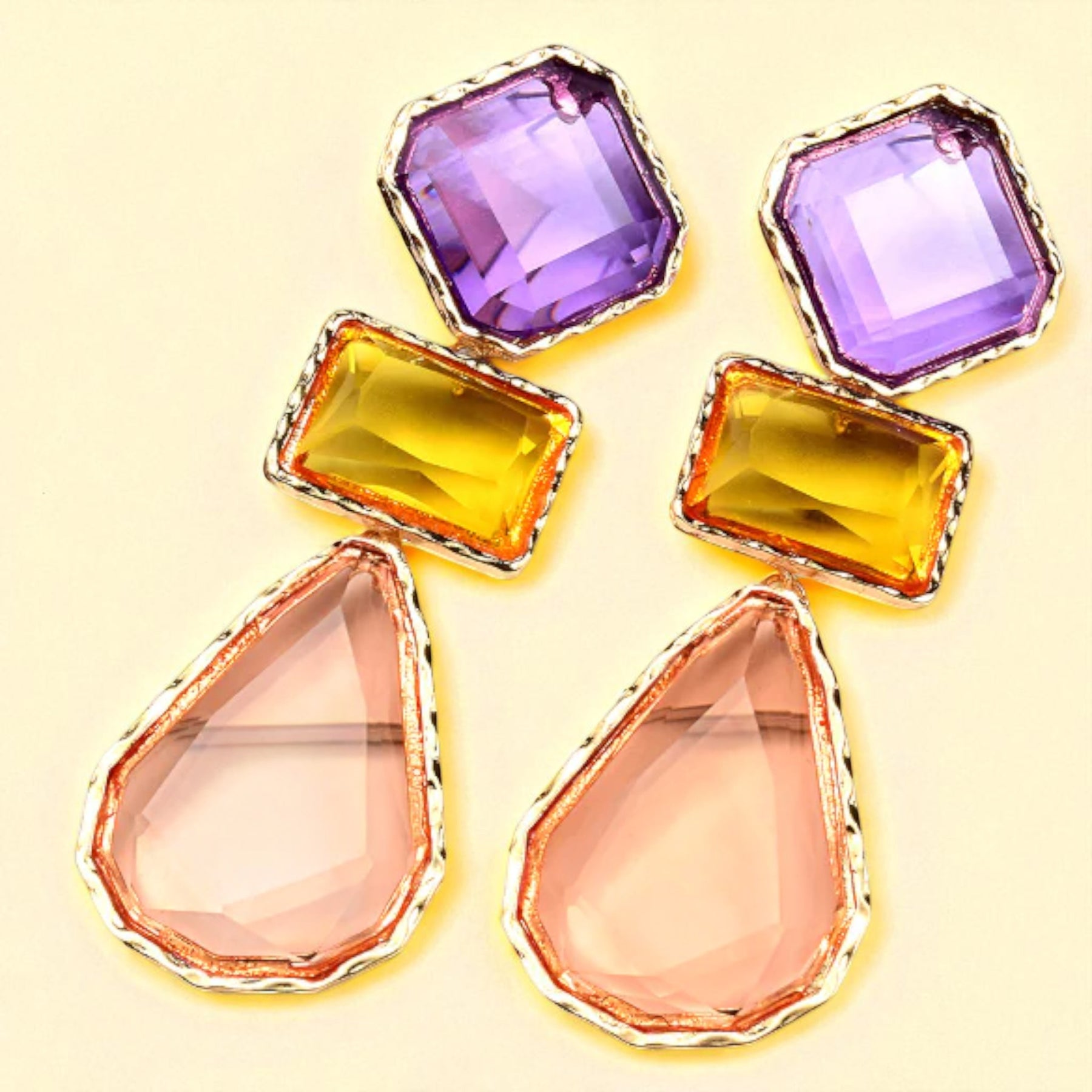 Elegância geométrica em cada detalhe. Design sofisticado com pedras multicolor que combina modernidade e sofisticação.