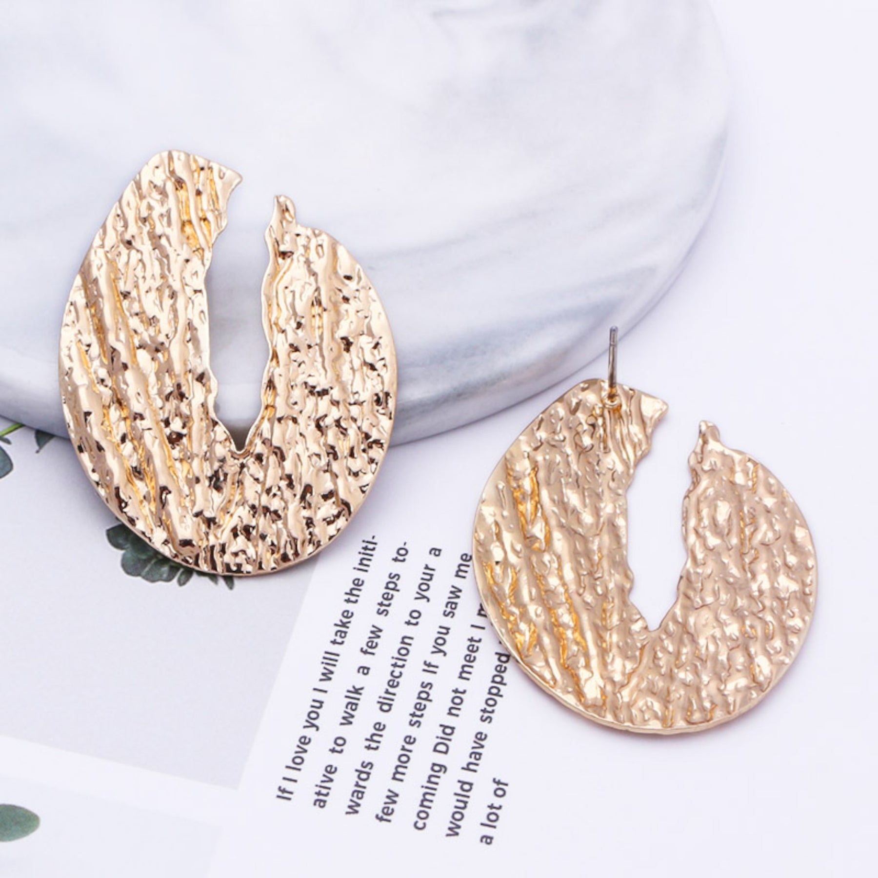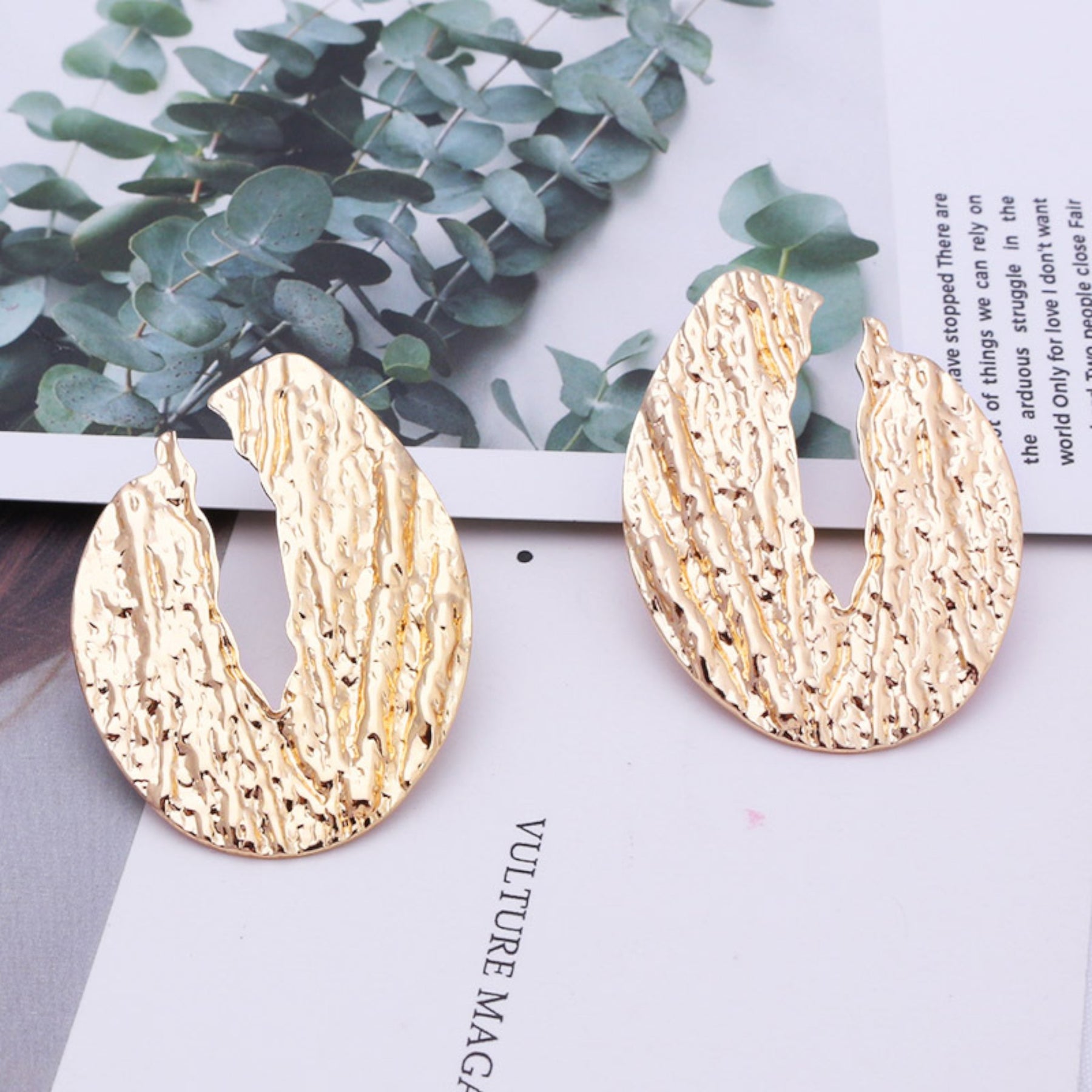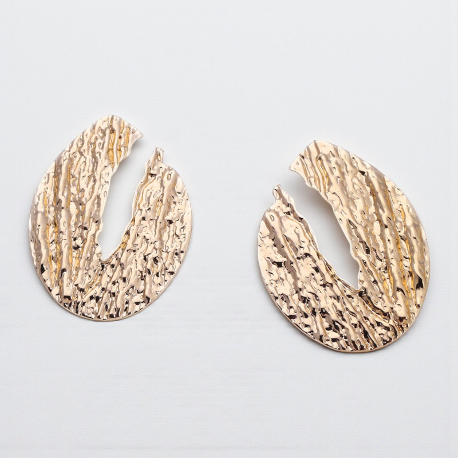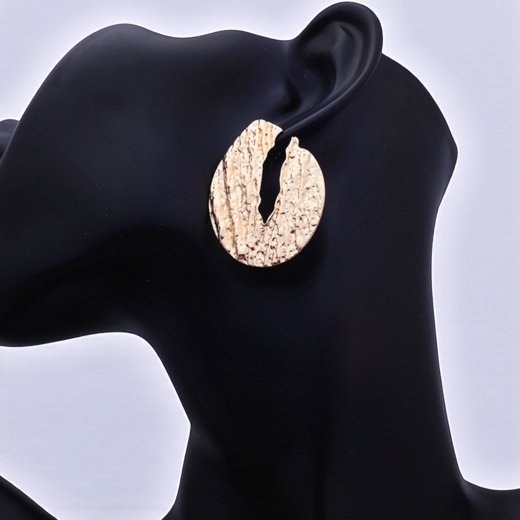 Elegância premium em design geométrico texturizado. Brincos metálicos que combinam tradição e modernidade.
