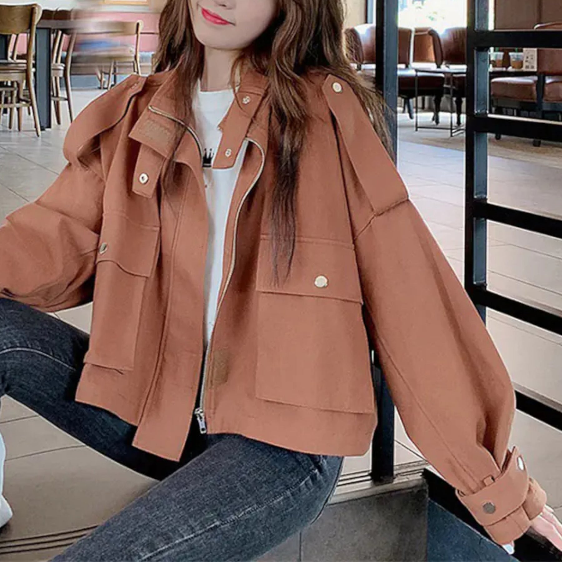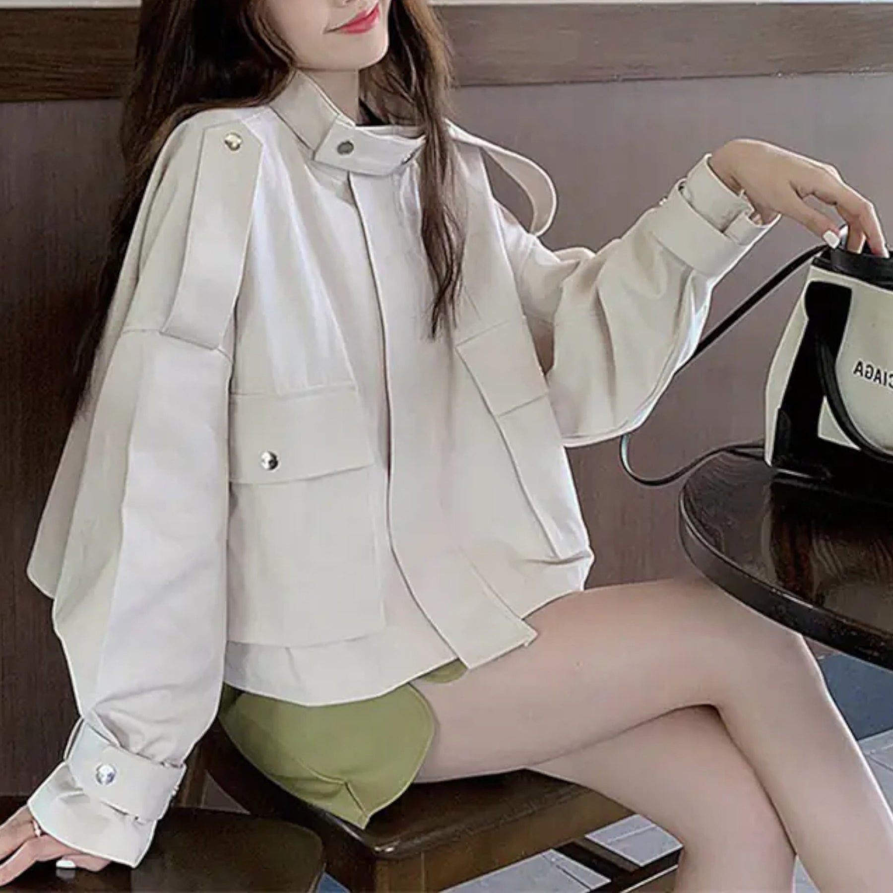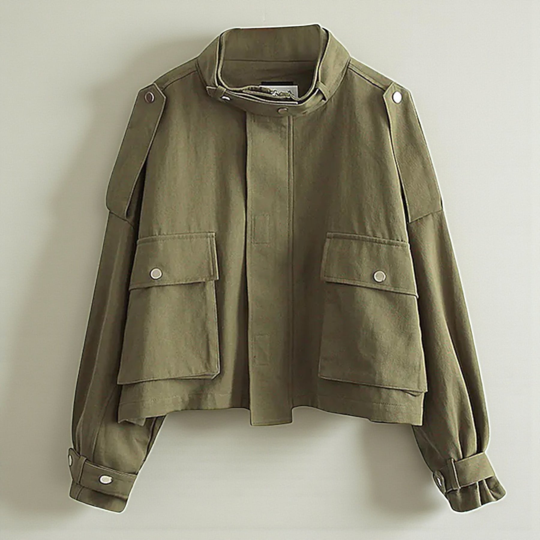 Elegância premium em design utilitário. Casaco curto que combina tradição e modernidade.