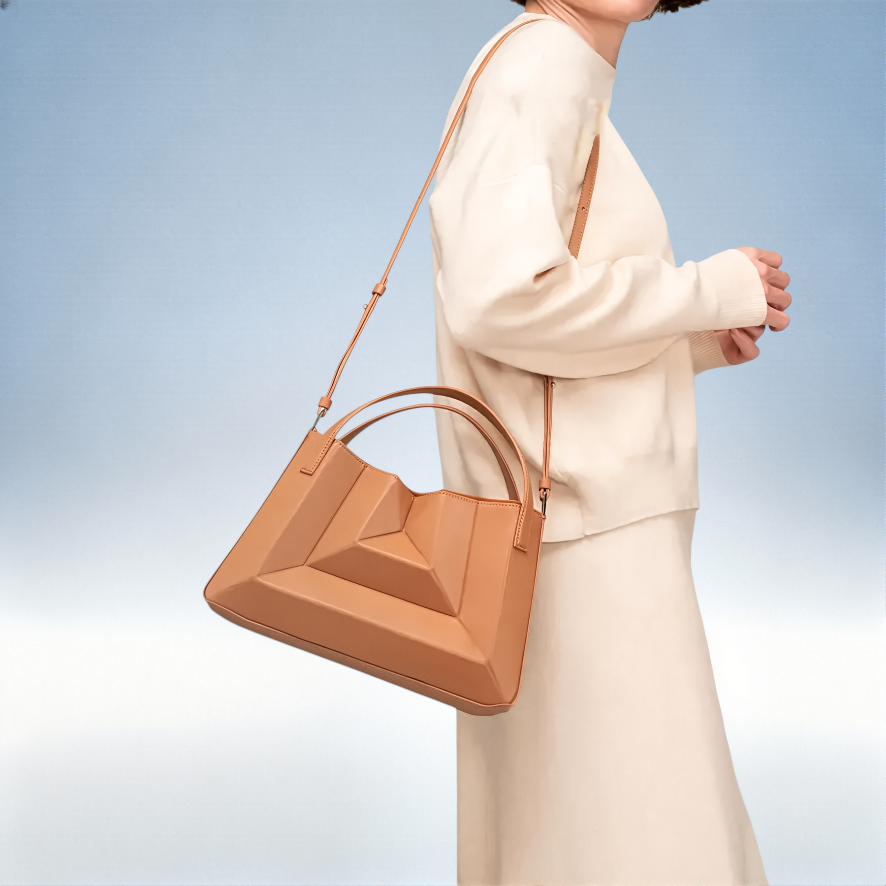 A MILENA é a nova definição de versatilidade — uma mala tote que combina design inteligente e elegância contemporânea. O seu formato dobrável estilo acordeão confere-lhe um charme moderno, perfeito tanto para o dia a dia como para momentos mais especiais.