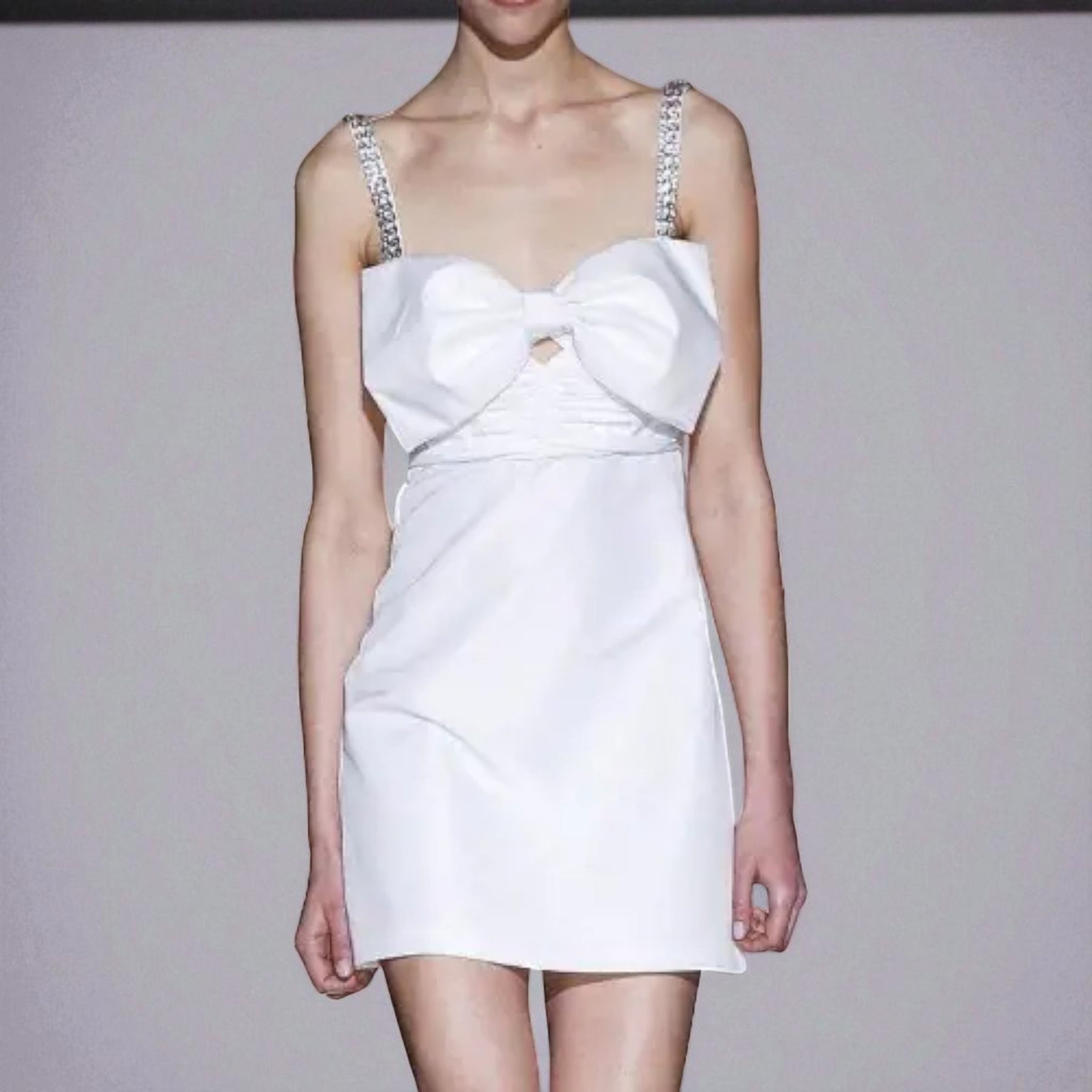 Inspirado no ballet mais romântico de todos os tempos, este vestido captura a essência etérea e delicada de Giselle. O branco imaculado evoca a pureza da bailarina camponesa, enquanto o design strapless com laço borboleta adiciona um toque de dramaticidade digna dos palcos da Ópera de Paris.
