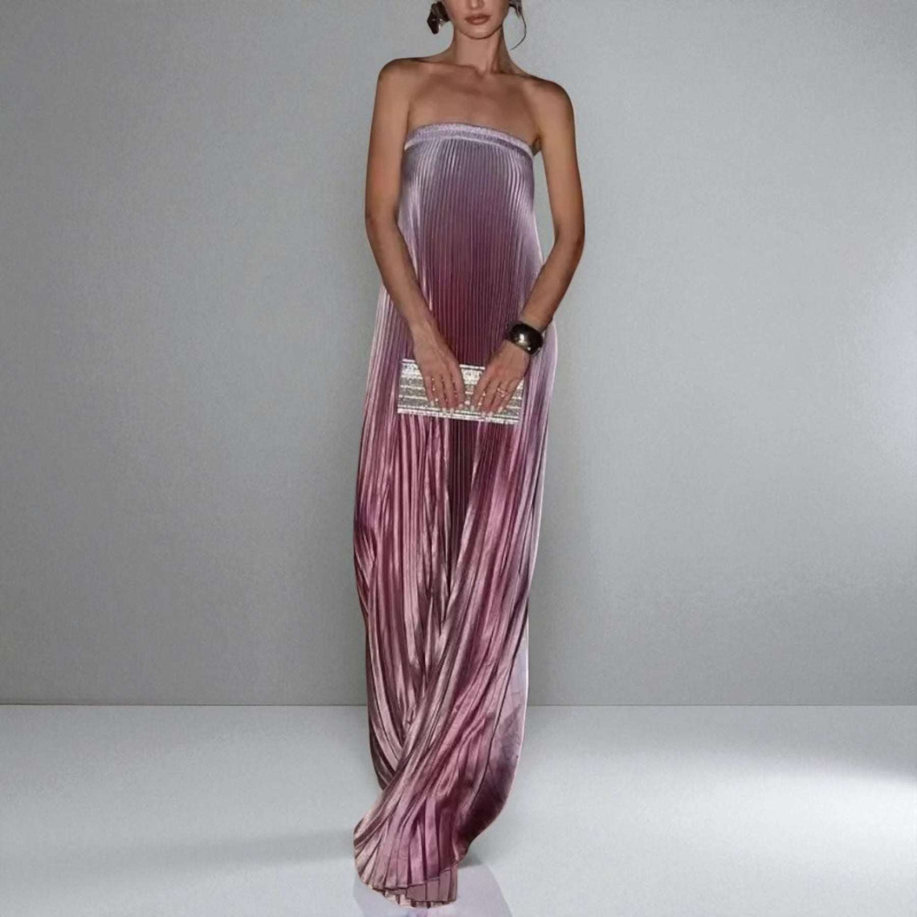 Design plissado sem alças e cauda de sereia, este vestido é ideal para ocasiões especiais ou para elevar o seu visual do dia-a-dia.