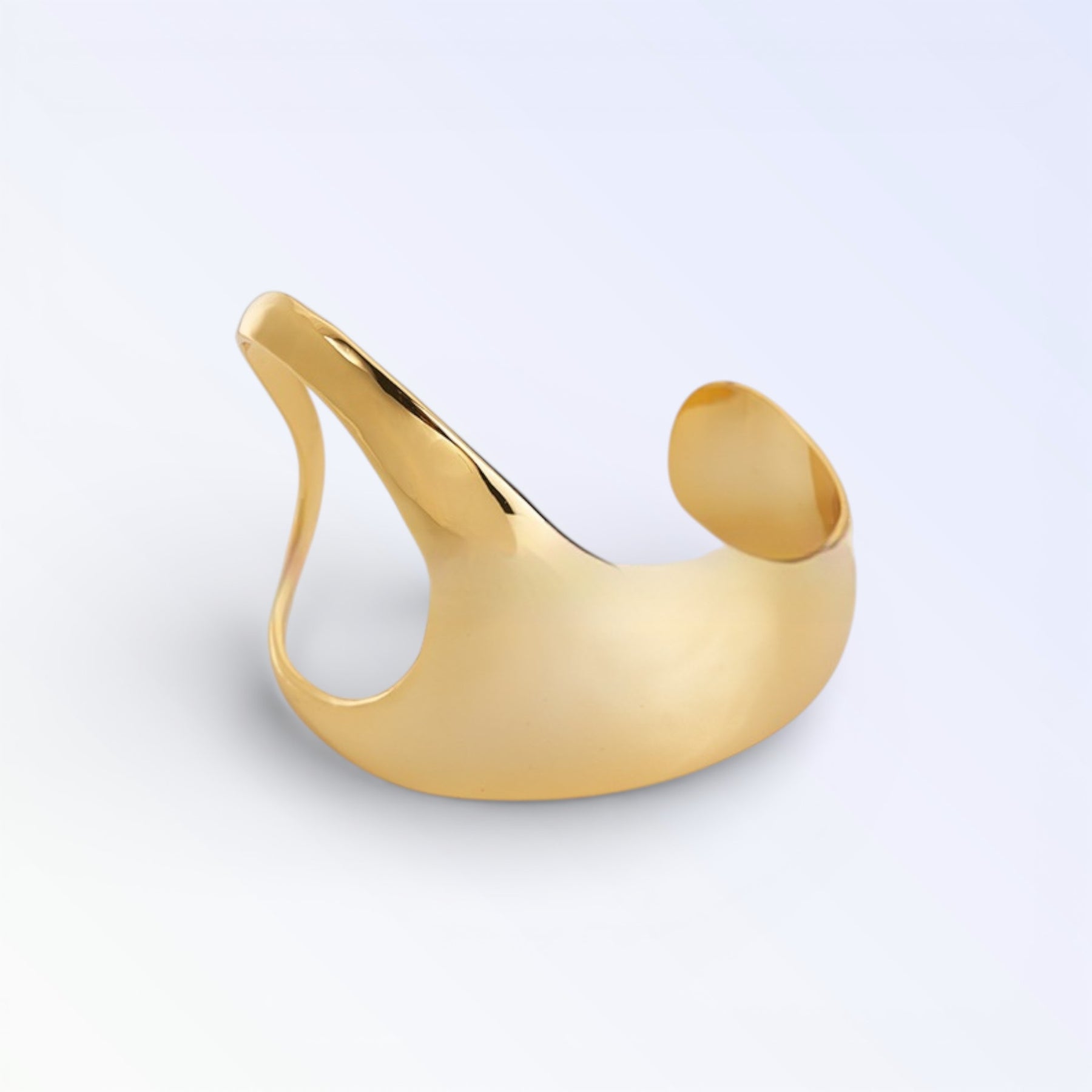 MENT eleva o pulso com volume generoso e brilho dourado/prateado intenso que atrai todos os olhares. A forma aberta em arco adapta-se ao movimento natural, criando impacto forte em visuais casuais ou formais com vestidos KUKA. Peça de destaque para afirmar estilo com luxo ao alcance.