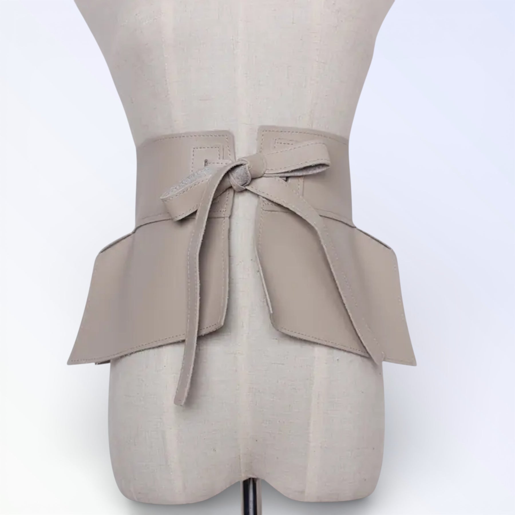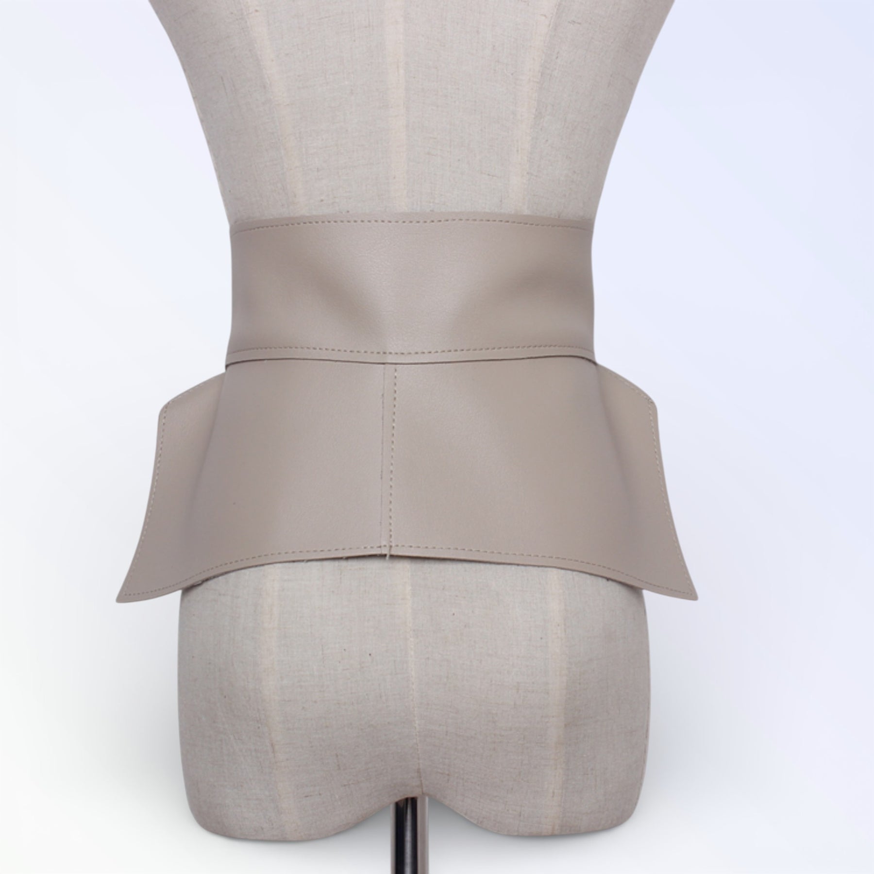 Estrutura rígida com laterais em “asa” que afinam visualmente a zona da cintura e valorizam qualquer camisa, vestido ou macacão.