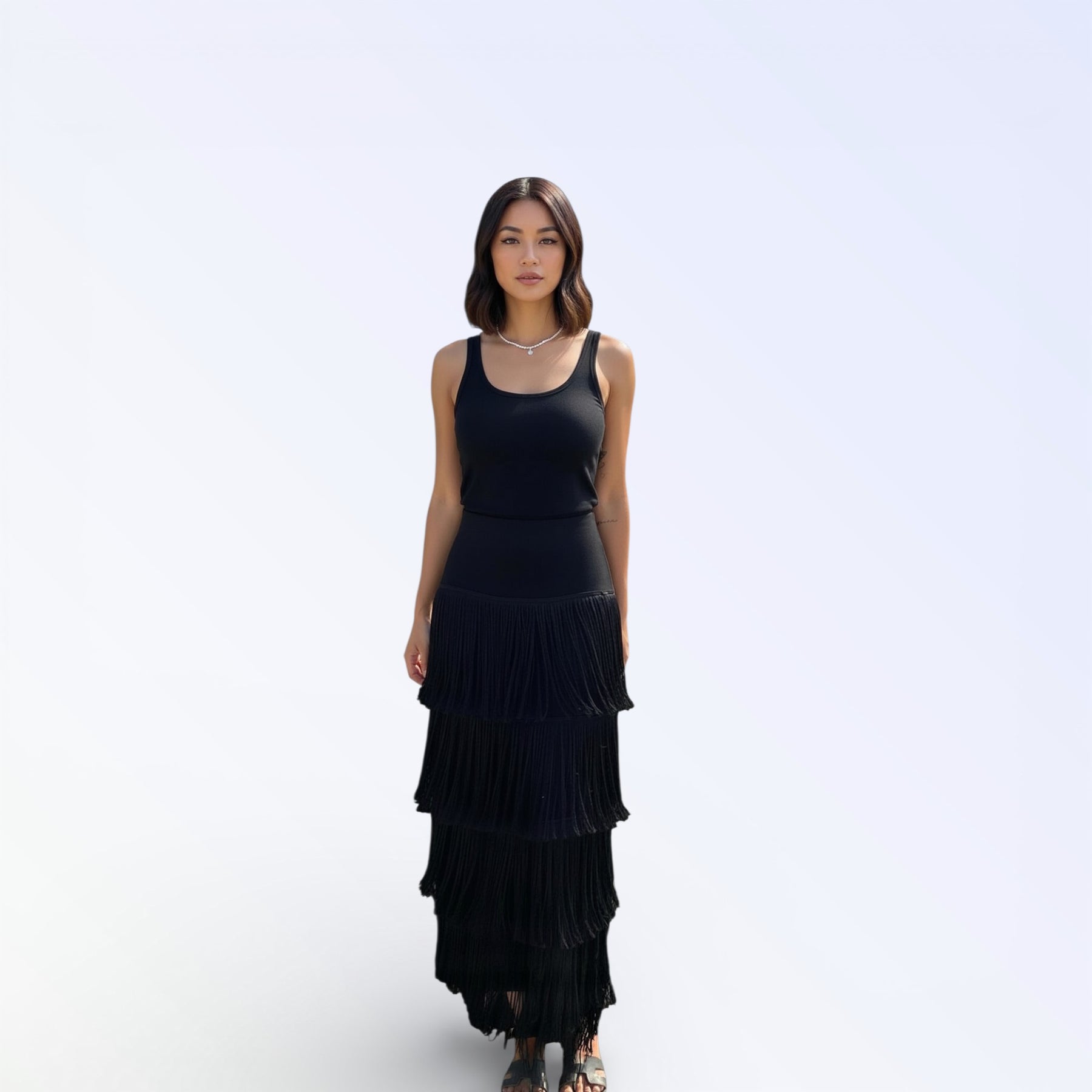 FRANCESCA — VESTIDO DE TRICÔ COM FRANJAS