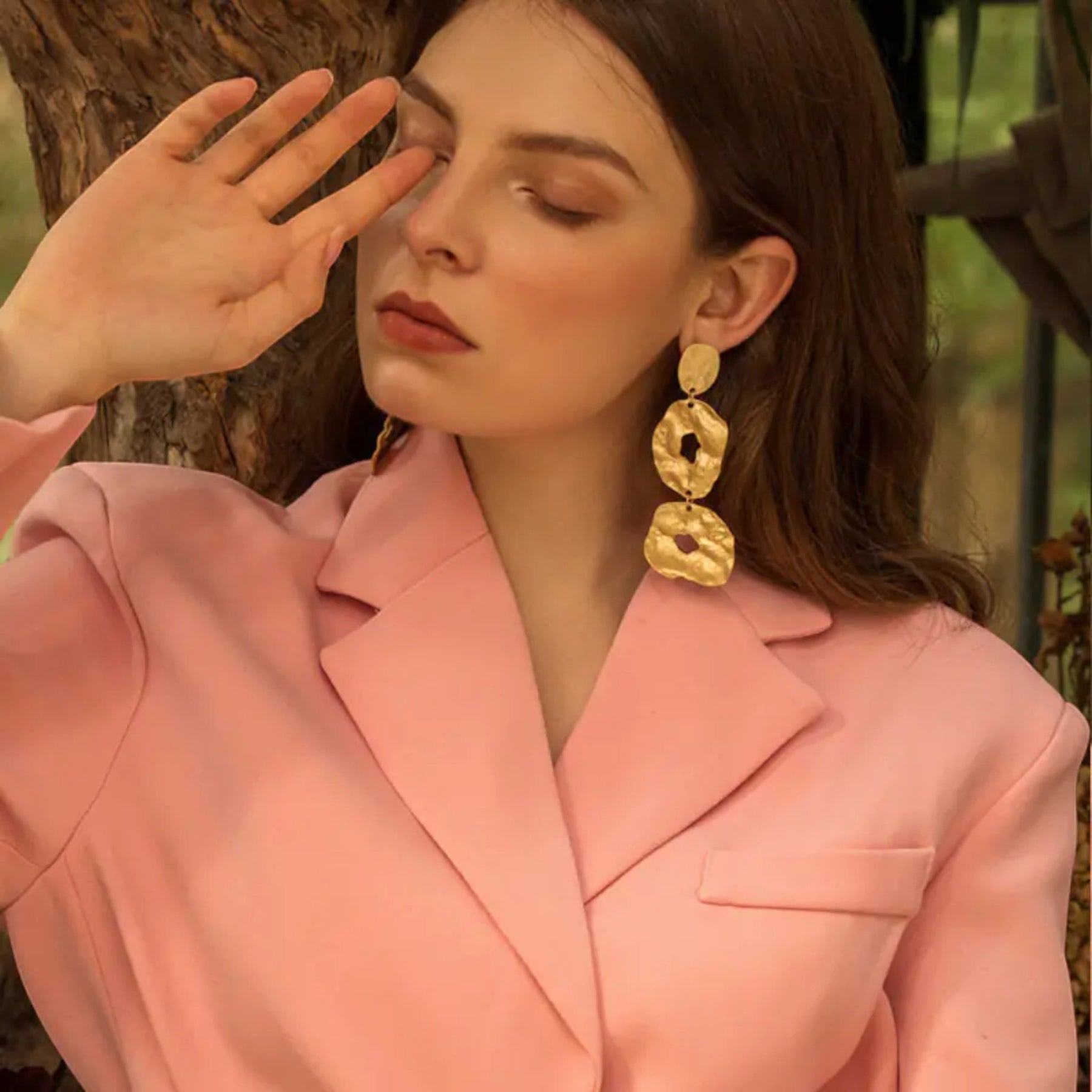 Estilo único: O design geométrico irregular cria movimento e arte, enquanto o dourado vintage garante luxo e sofisticação. É uma peça que combina arte flamenga com funcionalidade moderna.
